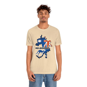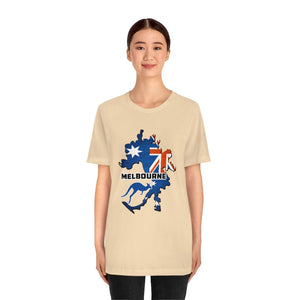 This design captures that energy—the bold "MELBOURNE" lettering standing firm like the city itself, unshaken by time, always evolving. It speaks of late-night music echoing through hidden bars, of street performers captivating crowds, of a culture that thrives on creativity and movement.