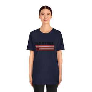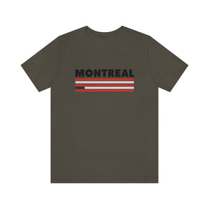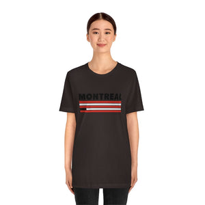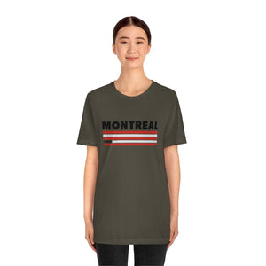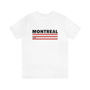 Montreal is a city of contrasts—where old-world charm meets modern energy, and culture thrives in every corner. The striking red and white bands in this design reflect the vibrancy of a city that pulses with creativity, from the jazz-filled streets of downtown to the historic cobblestone paths of Old Montreal. The bold "MONTREAL" lettering at the top symbolizes its unmistakable presence, a place known for its resilience and passion.