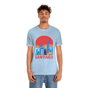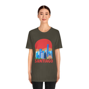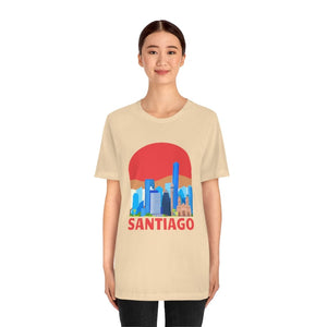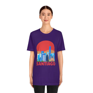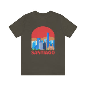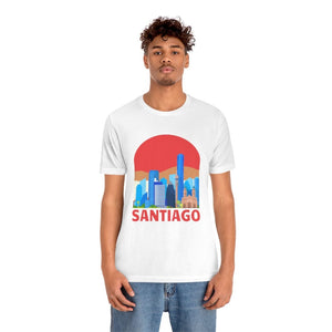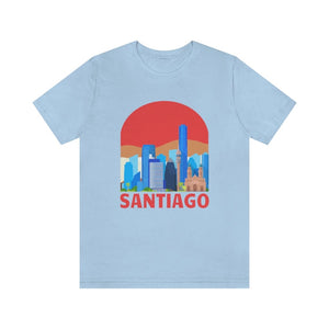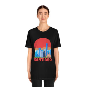 Santiago—a city cradled between the Andes and the Pacific, where modern towers rise against snow-capped peaks. The word "SANTIAGO" etched boldly across the chest captures this blend of urban grit and natural grandeur. It’s the pulse of Bellavista’s vibrant murals, the echo of guitar strings in Lastarria, and the crisp mountain air rolling into bustling plazas.