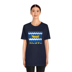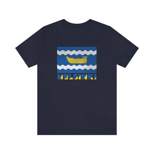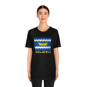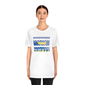 Helsinki stands as a beacon of Scandinavian resilience, innovation, and timeless charm. This design captures that essence with a simple yet bold tribute—the Finnish flag in a slightly distressed style, symbolizing strength through time. The deep blue cross reflects the vast northern skies and glacial waters, while the off-white background hints at Finland’s snowy landscapes. Beneath the flag, “HELSINKI” is printed in a dark-blue-gray, blending seamlessly into the design’s understated sophistication.