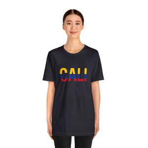 The city awakens as the sun casts golden light over Cali’s lively streets. Music echoes through the air, blending with salsa dancers' rhythmic steps and friends' laughter gathering in open plazas. Every moment pulses with energy—vibrant, unstoppable, and passionate. This design mirrors that very essence, with bold strokes of yellow, blue, and red forming the heart of the city’s name.