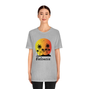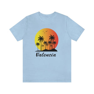 Golden sunlight reflects off the Mediterranean waves as palm trees sway gently in the warm Valencia breeze. The city is alive with energy, where beachside cafés hum with laughter and the scent of citrus fills the air. This design embodies the essence of Valencia—its vibrant spirit, its endless summer, and its undeniable charm. The striking palm tree graphics complement the bold typography, creating a piece that captures the warmth and beauty of Spain’s coastal paradise.