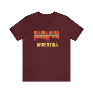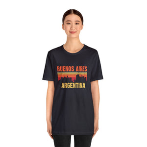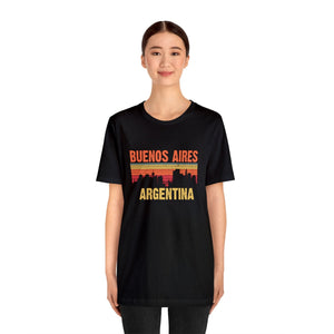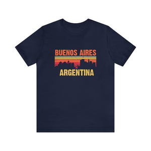 As the sun sets over Buenos Aires, the city comes alive with golden hues reflecting off its historic skyline. The retro-styled cityscape pays homage to its rich culture, blending classic architecture with modern energy. From the towering Obelisco to the colorful streets of La Boca, every corner tells a story of resilience, passion, and art. The stacked typography of “BUENOS AIRES” and “ARGENTINA” adds a bold, timeless appeal, symbolizing the pride of a nation.