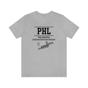 The “PHL” design feels like a boarding pass to the city’s heartbeat. The bold, dark gray letters stand out confidently, echoing the energy of bustling terminals and the thrill of new destinations. Framed in a sleek rectangular box, it’s a nod to the structured chaos of airport signs—organized yet full of movement. Below, “PHILADELPHIA” anchors the design, a reminder of the city’s rich history and modern spirit.
