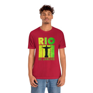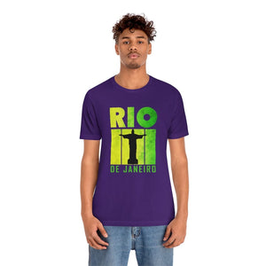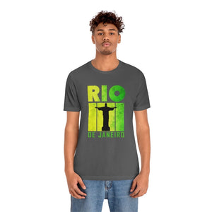 The words “DE JANEIRO” stretch across the fabric, echoing the pulse of Rio’s streets. This design feels like a sunset walk along Ipanema, where samba rhythms spill from open windows and waves kiss the shore. The letters rise bold and proud, capturing the balance between vibrant cityscapes and serene coastlines. It’s a nod to favelas climbing hillsides and the iconic Christ that watches over all.