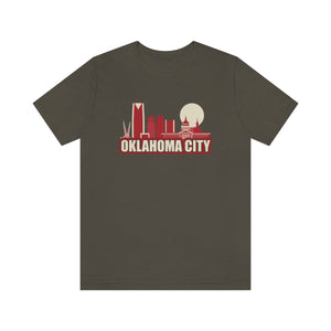 In the heart of Oklahoma City, where prairie winds meet the urban skyline, this design was born. The text “OKLAHOMA CITY” stands bold, a tribute to a place where cowboy roots entwine with city dreams. It’s more than letters on fabric; it’s a story of resilience, of sunlit streets and thundering skies. Each look captures a breath of red dirt air, the energy of game nights at Paycom Center, and the echoes of live music from Bricktown’s alleys.