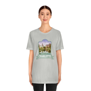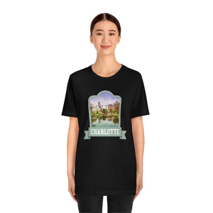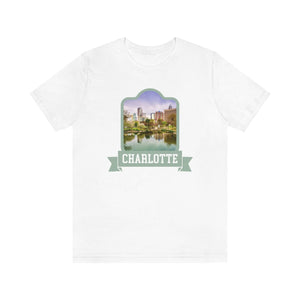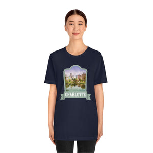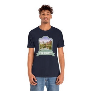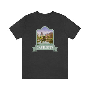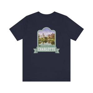 The “CHARLOTTE”inscription grounds the image, a nod to a city that thrives between progress and pause. Carrying this design is like a stroll through Freedom Park at sunset, where city lights and still waters blur the lines between hustle and haven. It’s more than a design—it’s a tribute to Charlotte’s duality.
