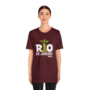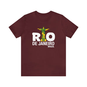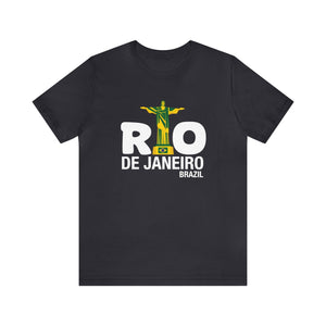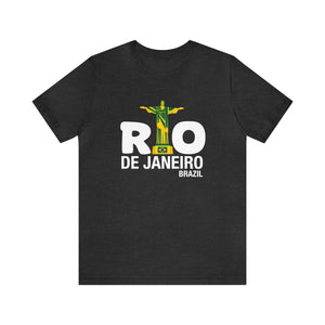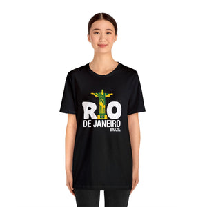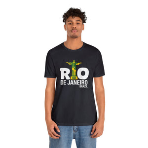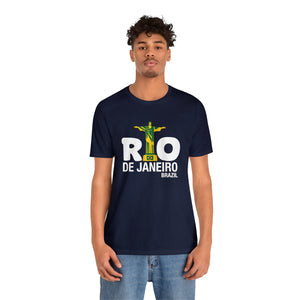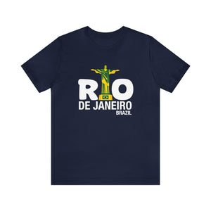 In Rio, the streets breathe life with every beat of samba, every wave that kisses the shore. This design captures that heartbeat—bold, direct, and timeless. The words "RIO" in large, white capital letters command attention, standing strong like the arches of Lapa or the cliffs of Sugarloaf. Below, "DE JANEIRO" is stacked vertically, a subtle nod to the city’s layered history and towering mountains.