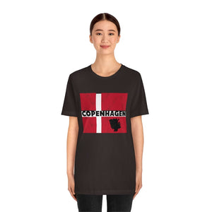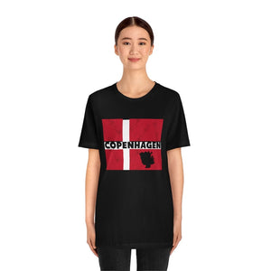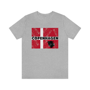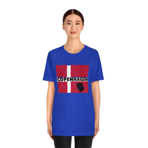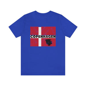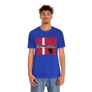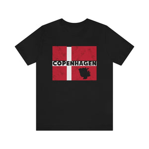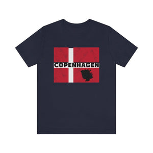 Copenhagen thrives between the canals and cobblestone streets, where bikes outnumber cars, and every corner holds a piece of Scandinavian charm. The word "COPENHAGEN"stands bold against the flag, capturing the city's blend of modern minimalism and historical allure. This design echoes the spirit of Nyhavn's colorful buildings, the calm of waterfront mornings, and the pulse of street markets in Vesterbro.