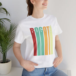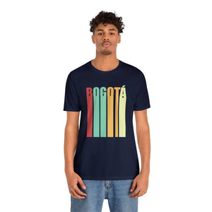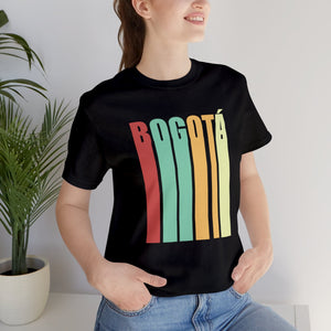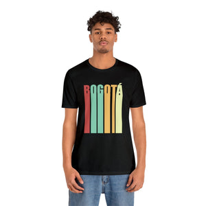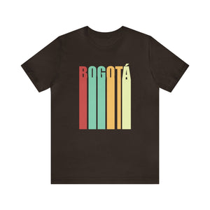 In the heart of Bogotá, where cobblestone streets meet modern avenues, echoes of the past blend with the pulse of today. Inspired by this timeless city, the design captures Bogotá's essence with the word "BOGOTÁ" vertically stacked in a bold, retro style. The dark brown backdrop adds warmth and depth, evoking memories of classic cafés and historic façades.